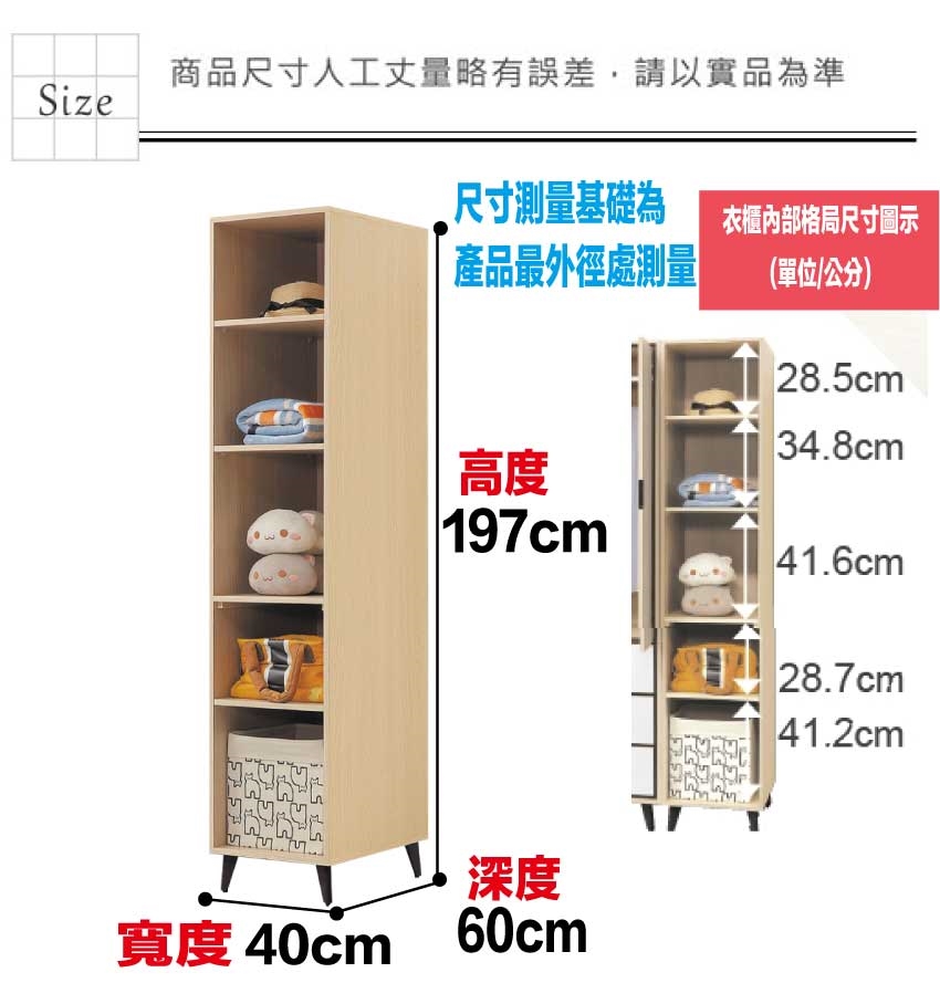 - 尺寸:(寬40x(深)60x(高)197/公分