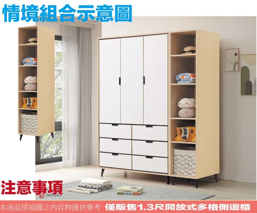 - ◆產品名稱:【綠家居】摩卡1.3尺開放多格側邊衣櫃/收納櫃