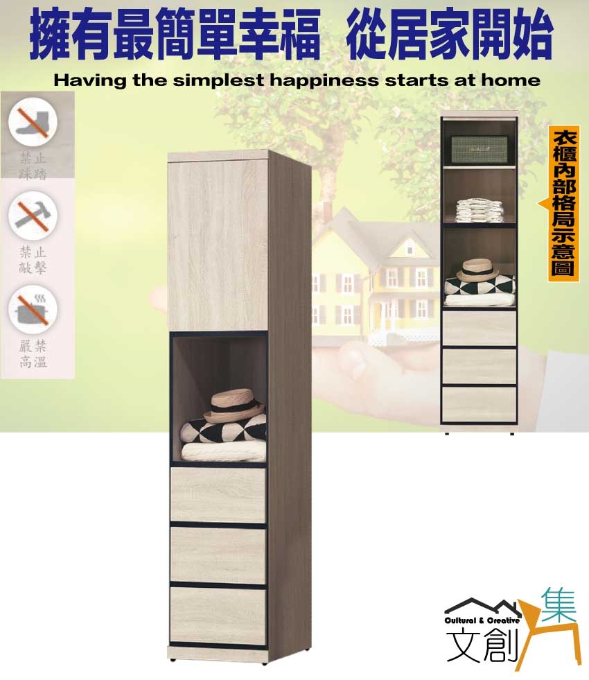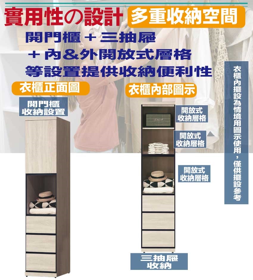 【綠家居】摩泰1.5尺單門三抽中空衣櫃