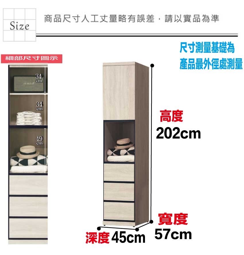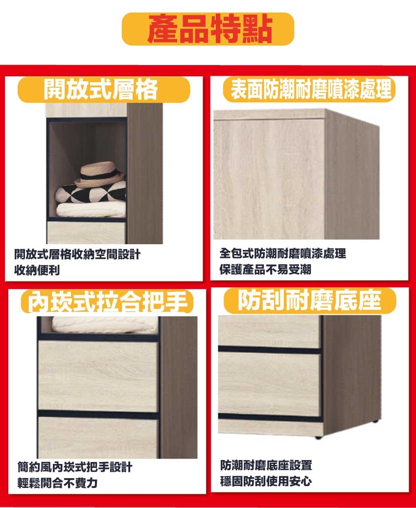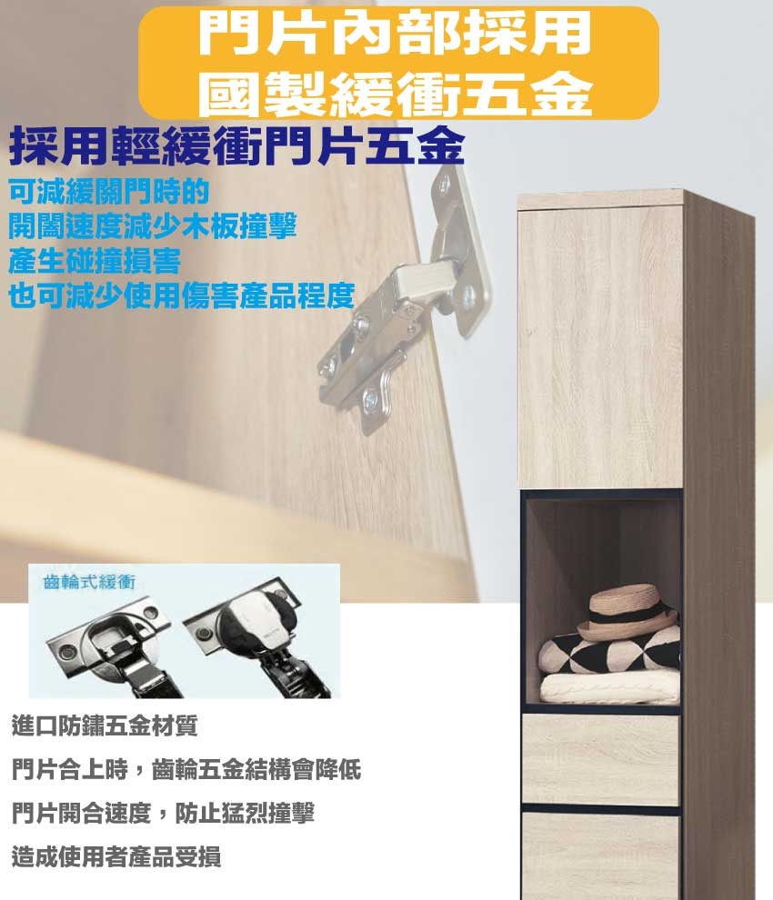 材質:防蛀木心板+防潮耐磨底座(可調高低水平)+防夾手緩衝門片五金-