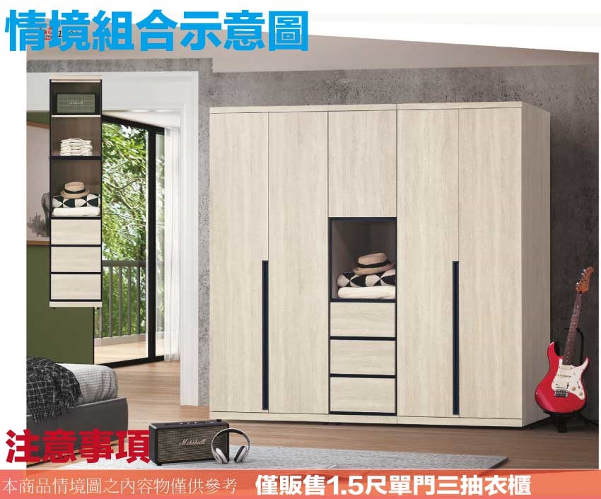 - ◆產品名稱:【綠家居】摩泰1.5尺單門三抽中空衣櫃
