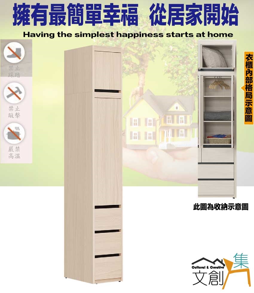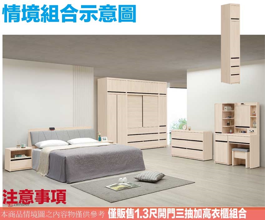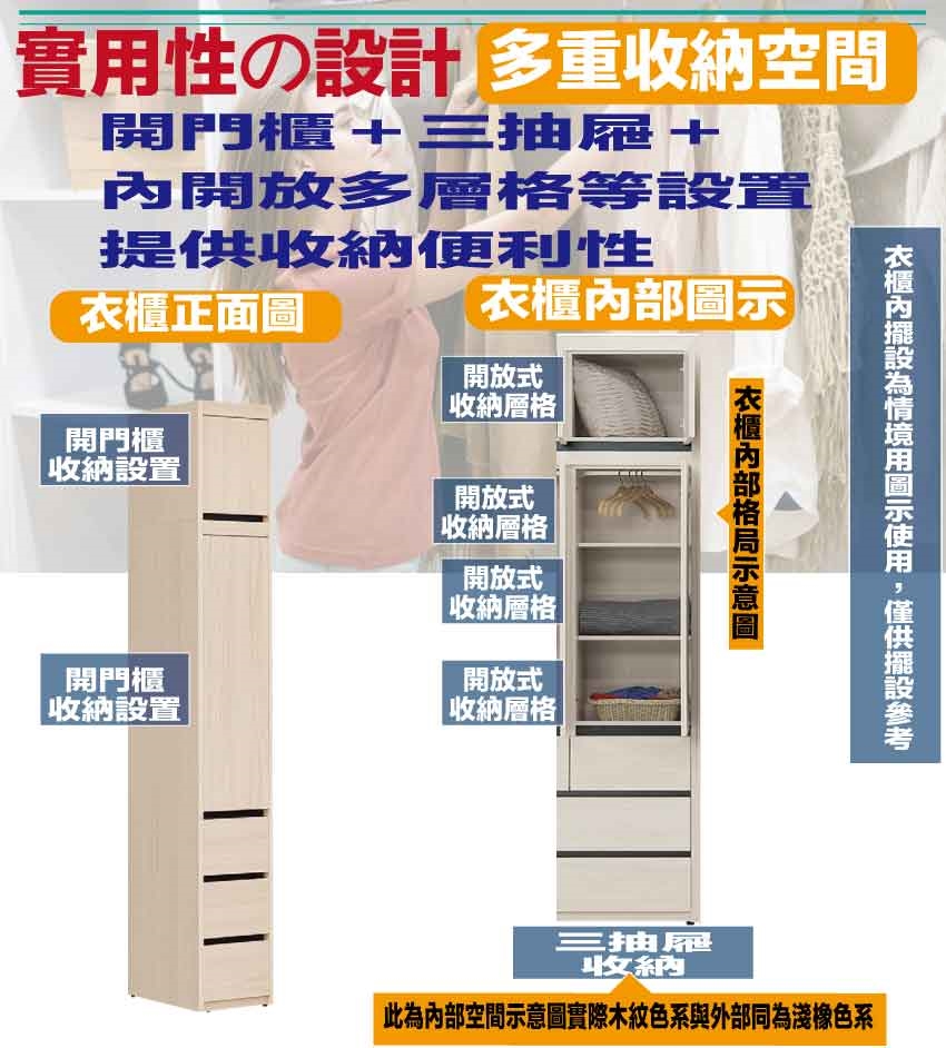 - 產品名稱:【綠家居】愛可1.3尺二門三抽加高衣櫃組合