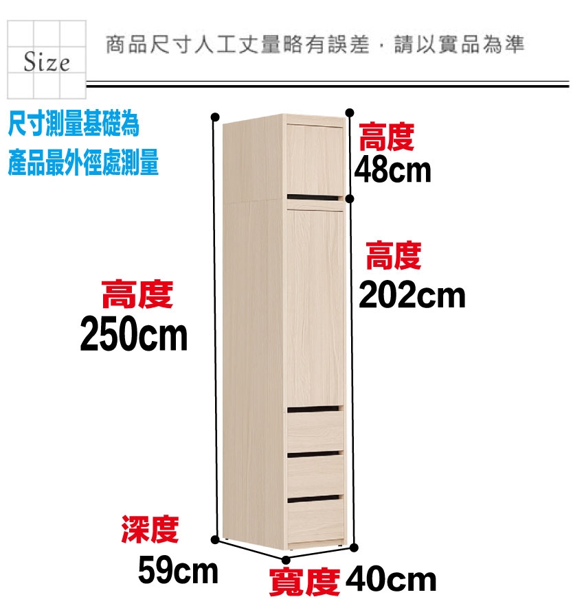 - 尺寸:(寬)40x(深)59x(高)250/公分