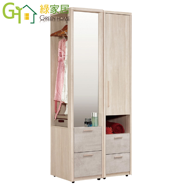【綠家居】杜蜜拉 現代1.4尺鏡面二抽開放衣櫃/收納櫃