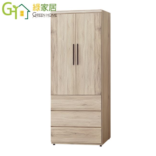 【綠家居】莉歐 現代2.5尺二門三抽衣櫃/收納櫃
