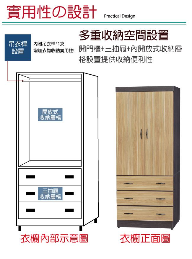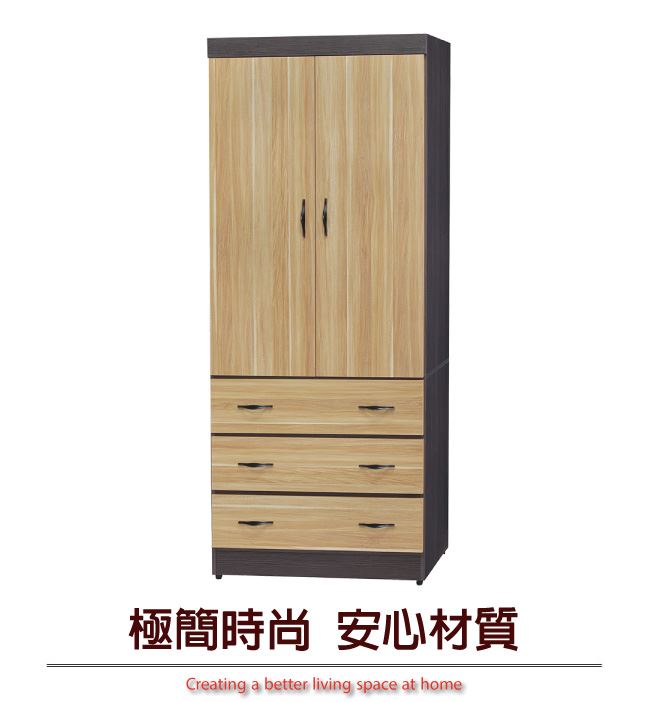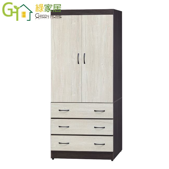 【綠家居】斯里蘭 現代2.7尺二門三抽衣櫃/收納櫃(三色可選)