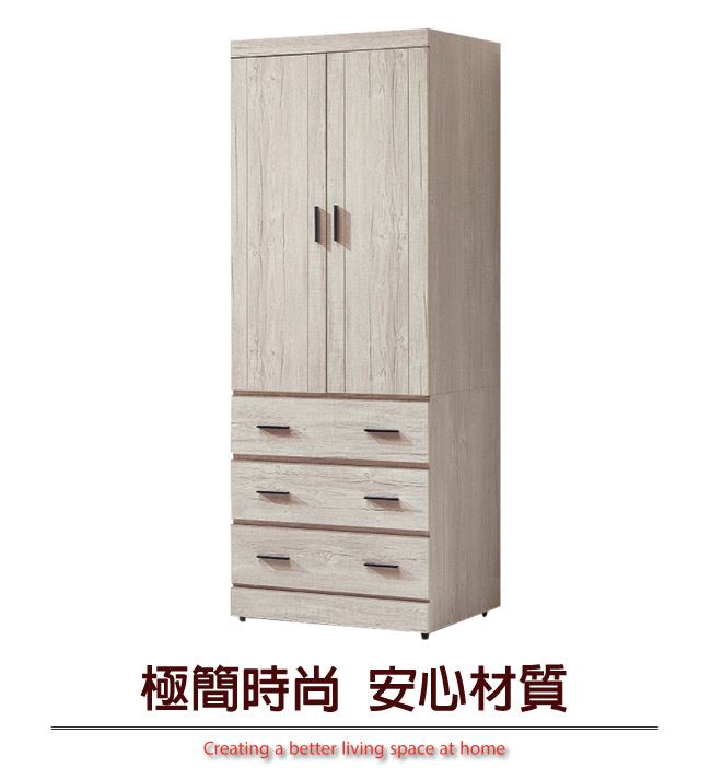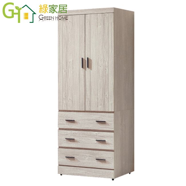 【綠家居】德里 現代2.5尺開門三抽衣櫃/收納櫃