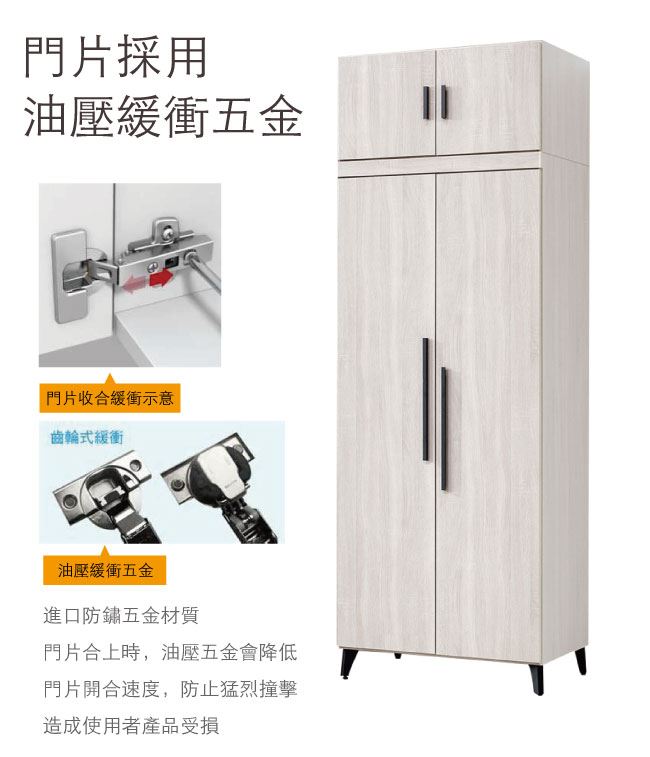 - 橡木紋色系+防夾手緩衝門片五金