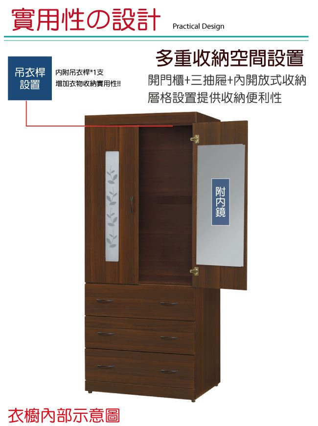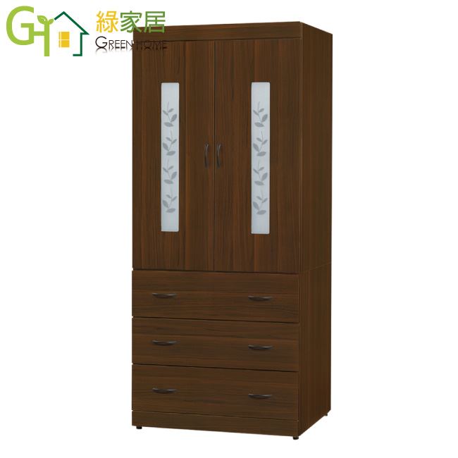 【綠家居】姆維亞 時尚2.7尺二門三抽衣櫃/收納櫃(附穿衣鏡面)
