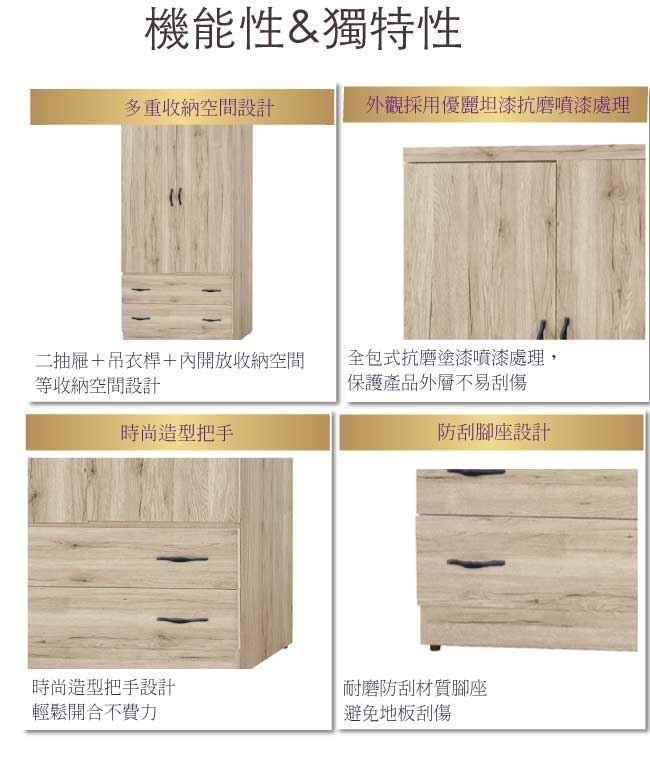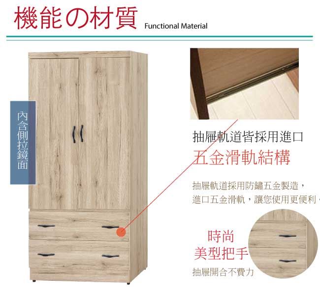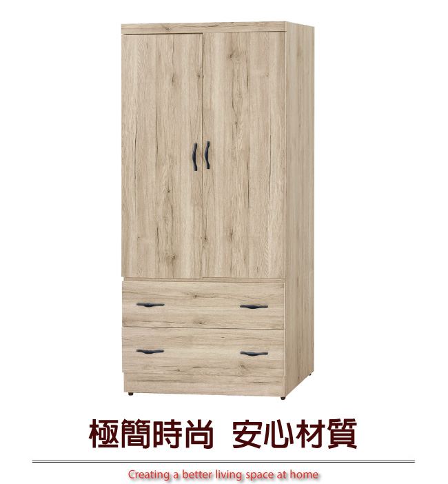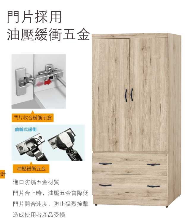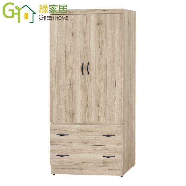 【綠家居】亞爾 木紋2.7尺二抽二門衣櫃/收納櫃