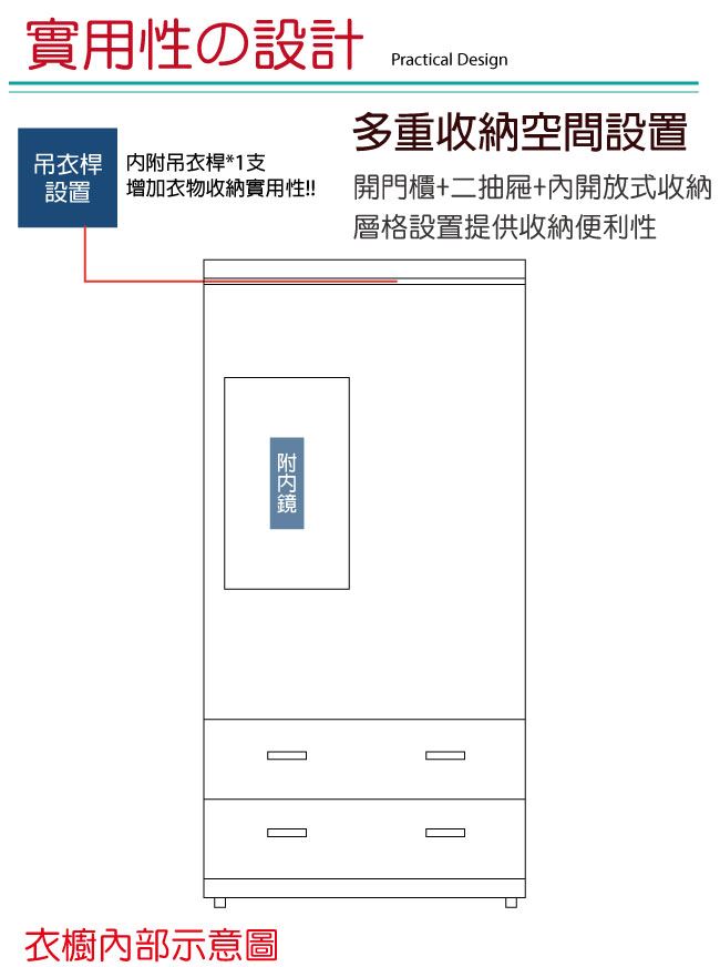 - 開門櫃+吊衣桿+二抽屜
