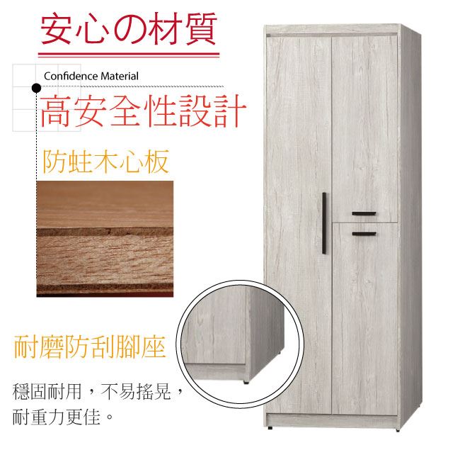 材質 | ◆產品名稱: 【綠家居】卡佐 右向橡木紋2.4尺三門雙吊衣櫃 尺寸:(寬)73x(深)60x(高)200/公分 ◆材質: 材質:防蛀木心板+防潮耐磨腳座 噴漆:防潮耐磨噴漆處理