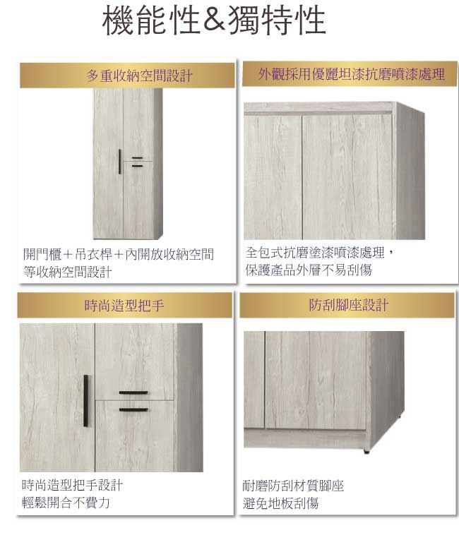 【綠家居】卡佐 右向橡木紋2.4尺三門雙吊衣櫃