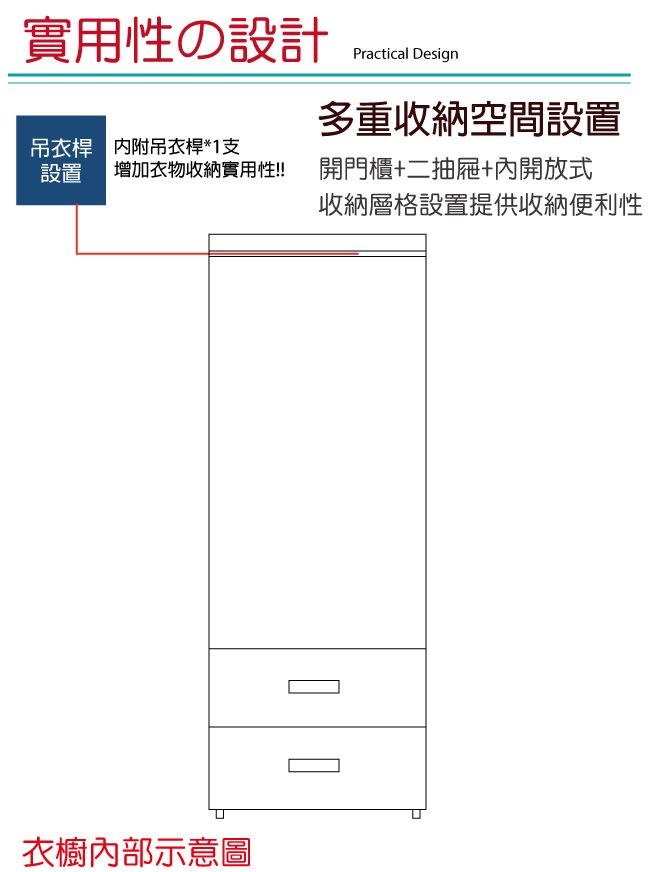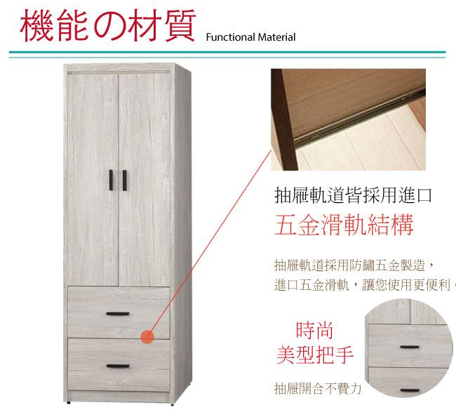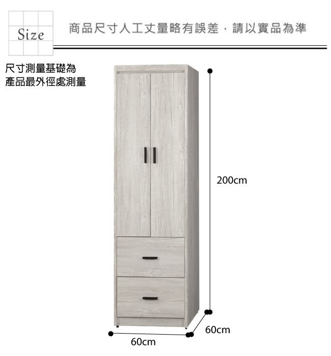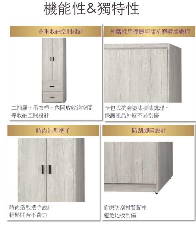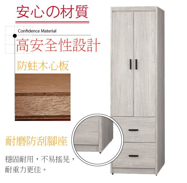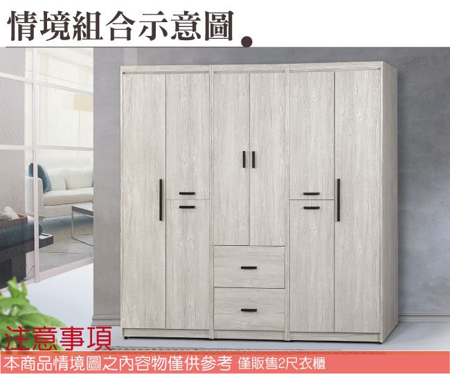 【綠家居】卡佐 橡木紋2尺二門二抽衣櫃