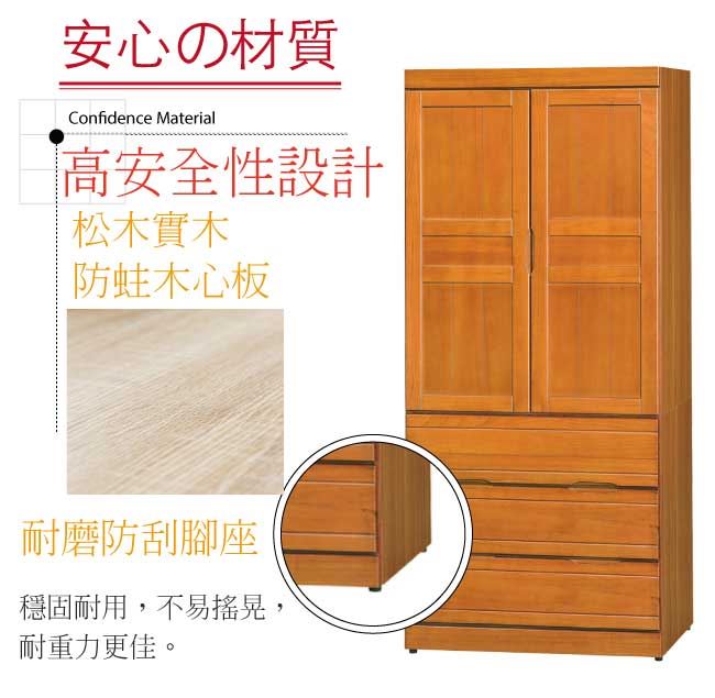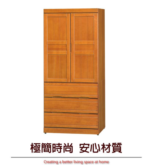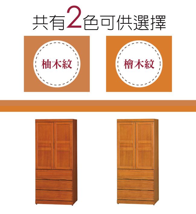 【綠家居】柏菲 二門2.9尺三抽衣櫃(二色可選)