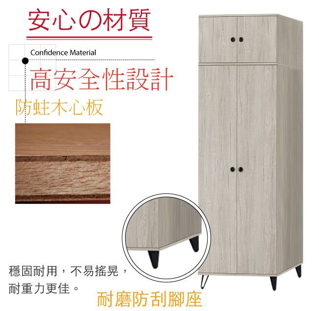 材質 | ◆產品名稱: 【綠家居】提菲芮 加高2.6尺四門衣櫃/收納櫃組合 尺寸:(寬)77x(深)60x(高)237.1公分 ◆材質: 材質:防蛀木心板+黑鐵砂腳座+防夾手緩衝門片五金 外層採用全包式防潮耐磨噴漆處理
