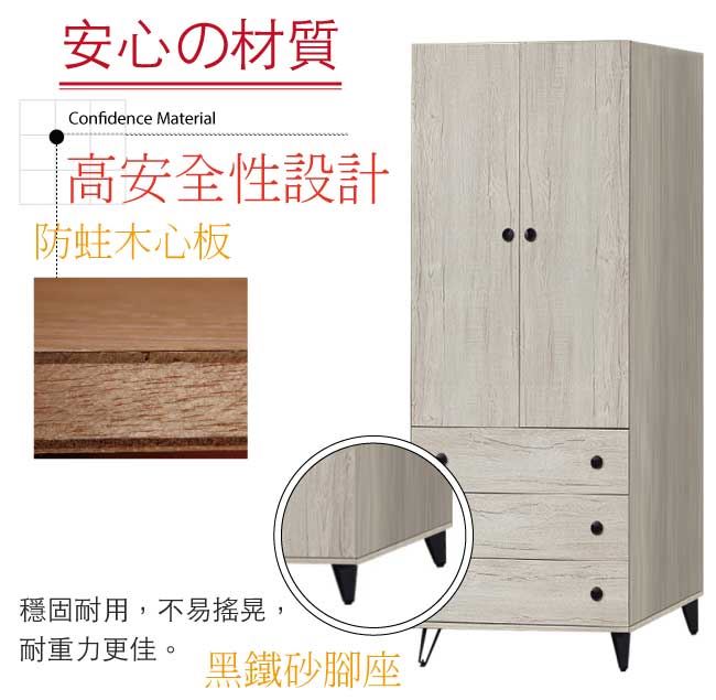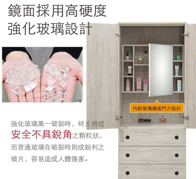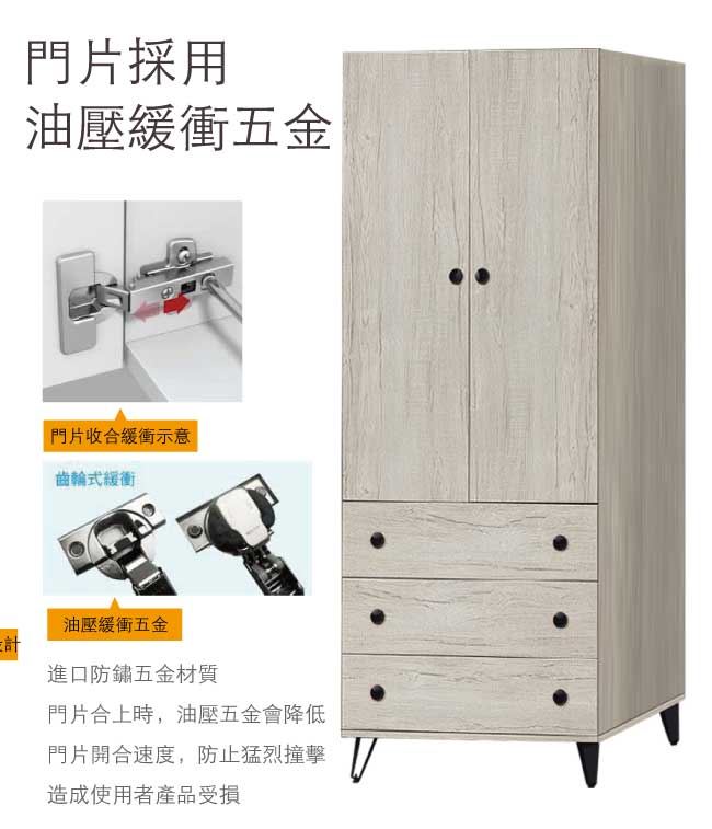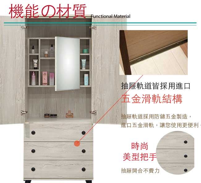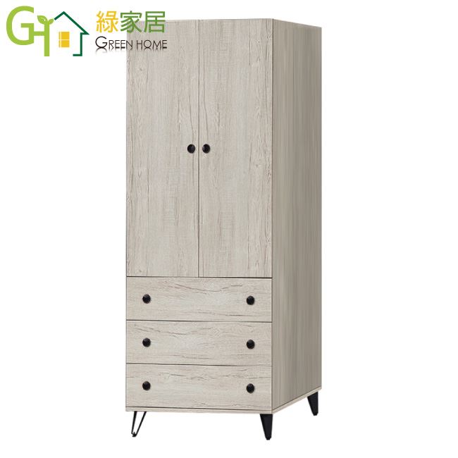 【綠家居】提菲芮 時尚2.6尺二門三抽衣櫃/收納櫃(內含化妝鏡面櫃設置)