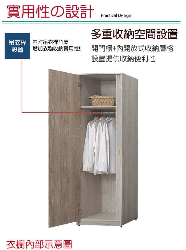 【綠家居】提韋克 時尚2尺單門單吊衣桿衣櫃/收納櫃