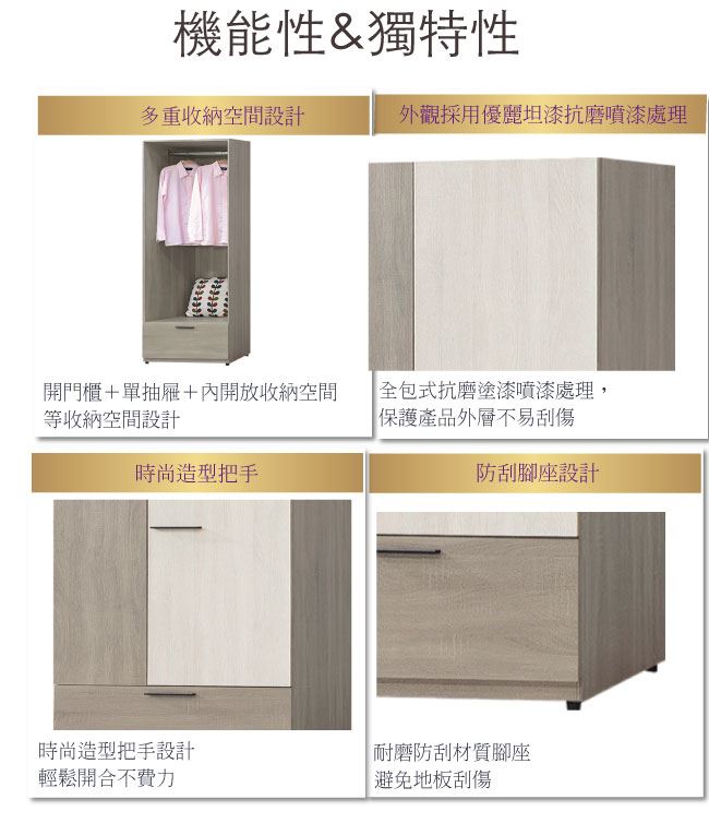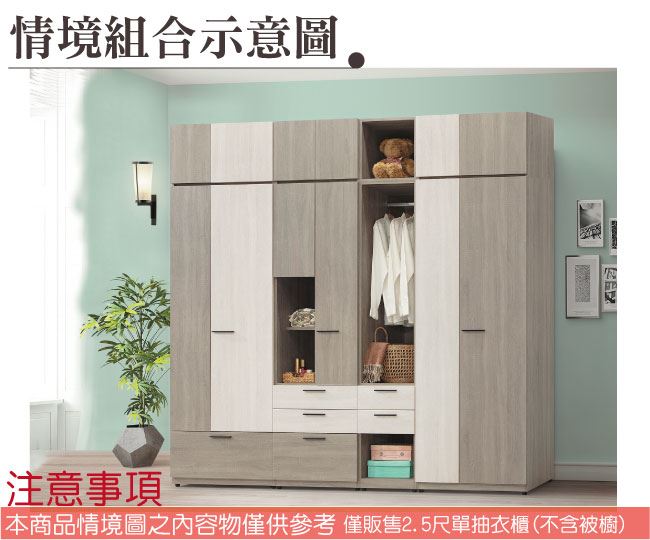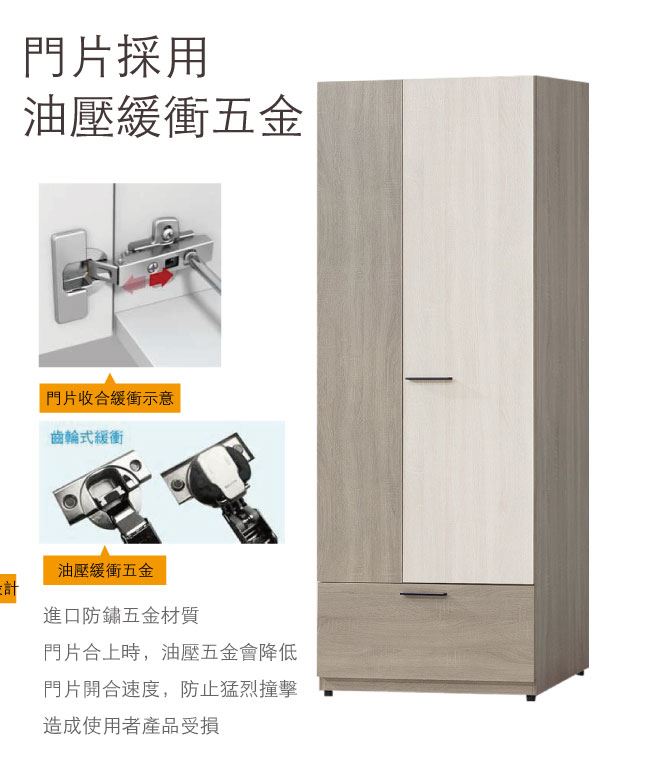 【綠家居】歐倫勒 雙色2.5尺二門單抽衣櫃/收納櫃