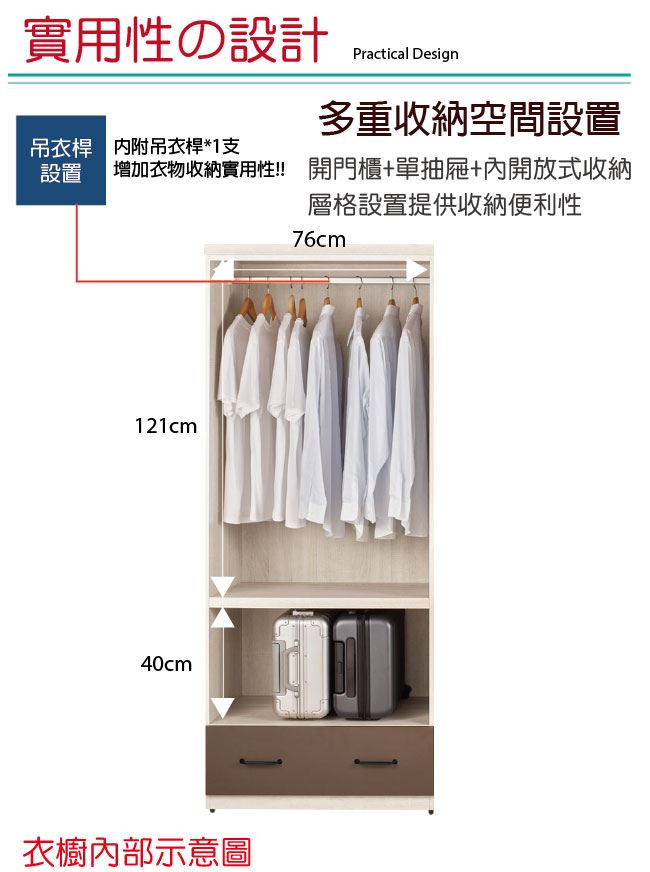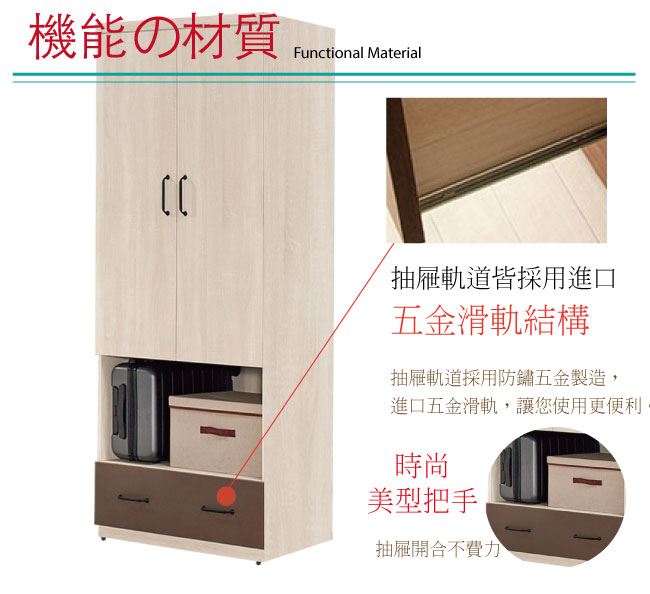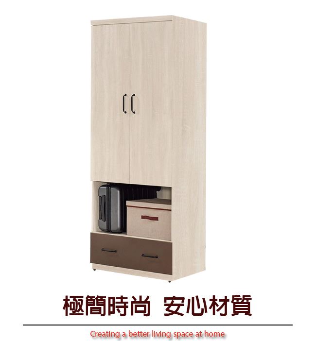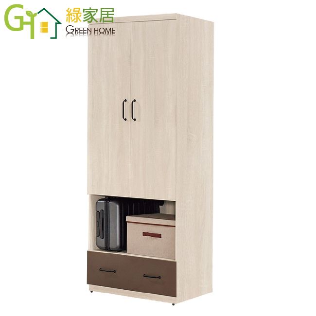 【綠家居】畢娜 雙色中空2.7尺二門單抽衣櫃
