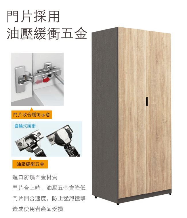 - 木紋雙色+防夾手緩衝門片五金