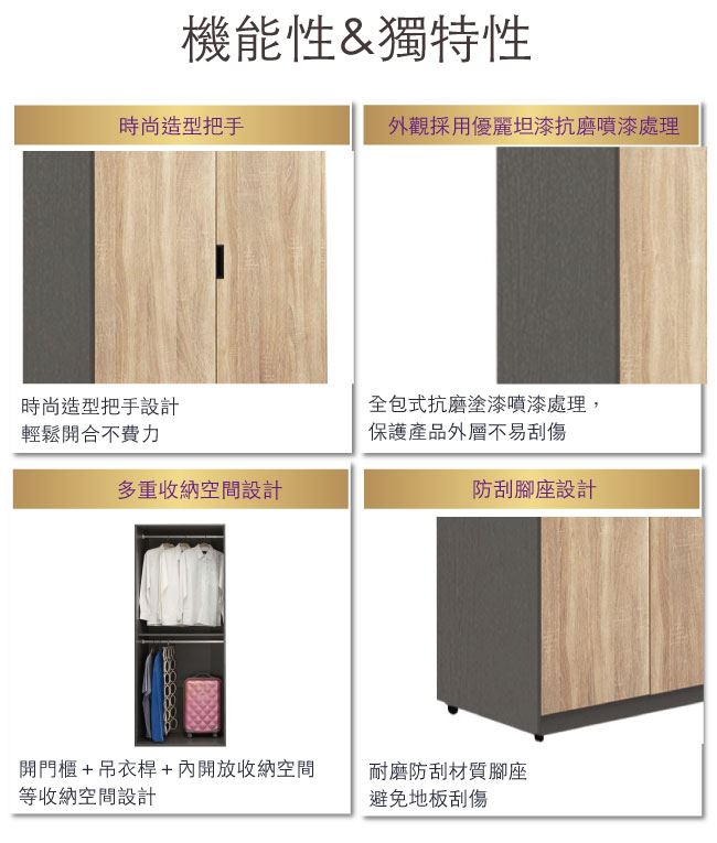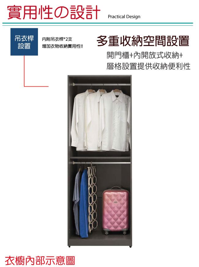 - 開門櫃+雙吊衣桿+內開放式層格