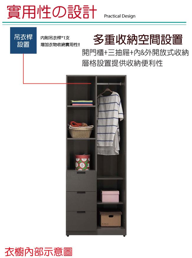 【綠家居】科羅利 雙色2.5尺單門三抽衣櫃/收納櫃