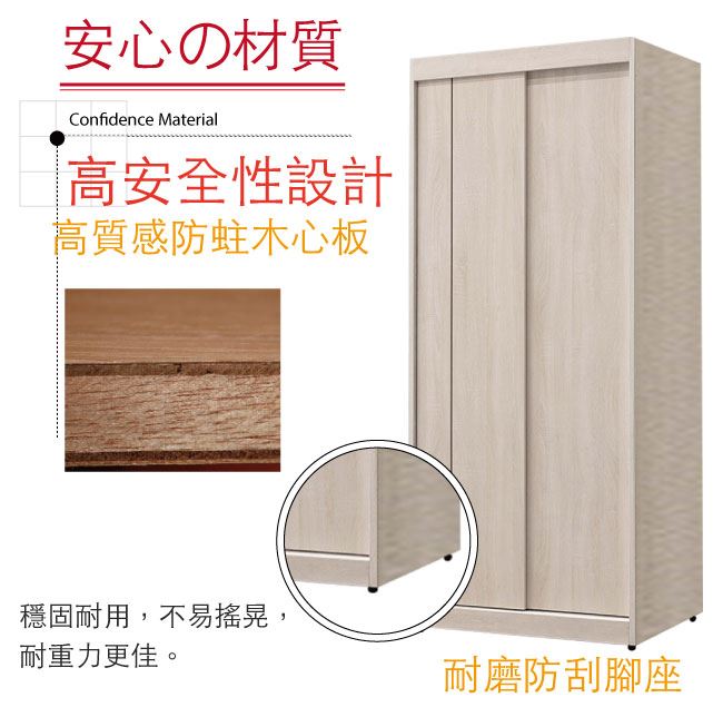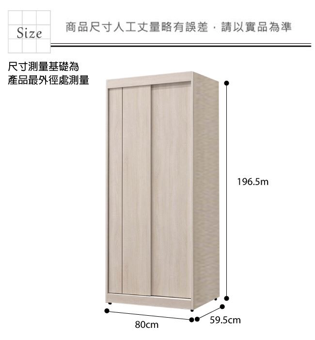 材質 | ◆產品名稱: 【綠家居】維肯 時尚2.7尺推門雙吊衣櫃/收納櫃 尺寸:(寬)80x(深)59.5x(高)196.5/公分 ◆材質: 材質:防蛀木心板+防潮耐磨腳座 噴漆:外層採用防潮耐磨噴漆處理