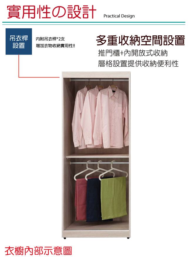 【綠家居】維肯 時尚2.7尺推門雙吊衣櫃/收納櫃
