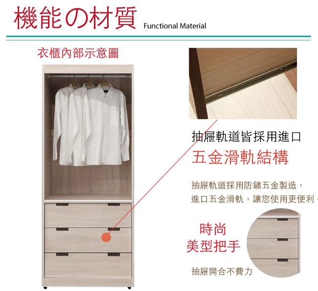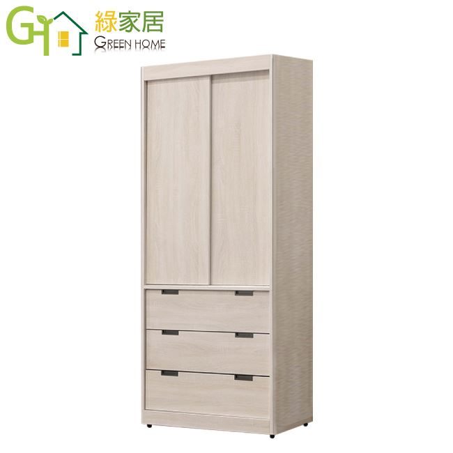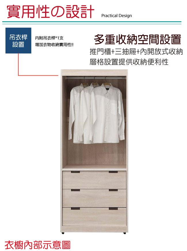 【綠家居】維肯 時尚2.7尺推門三抽衣櫃/收納櫃