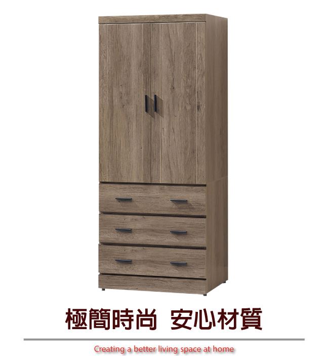 【綠家居】查莫 時尚2.5尺二門三抽衣櫃/收納櫃