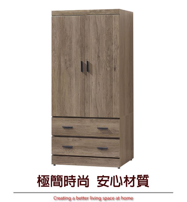 【綠家居】查莫 時尚2.8尺二門二抽衣櫃/收納櫃