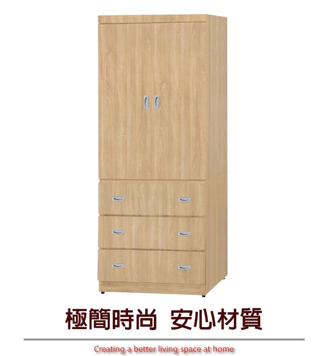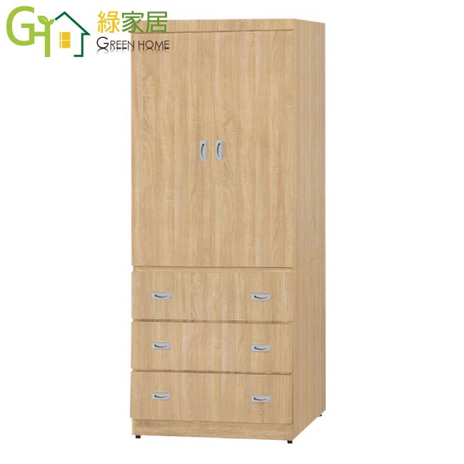 【綠家居】比勒 時尚2.7尺二門三抽衣櫃/收納櫃(附穿衣鏡面)