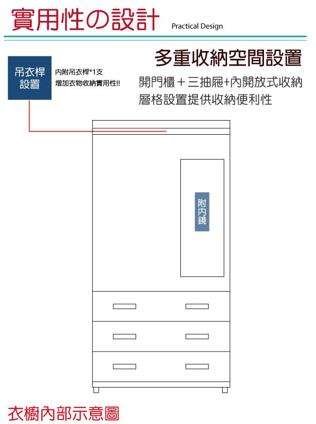 材質 | ◆產品名稱: 【綠家居】比勒 時尚2.7尺二門三抽衣櫃/收納櫃(附穿衣鏡面) 尺寸:(寬)81.5x(深)58.2x(高)200/公分 ◆材質: 材質:防蛀木心板+五金滑軌結構+防潮耐磨腳座