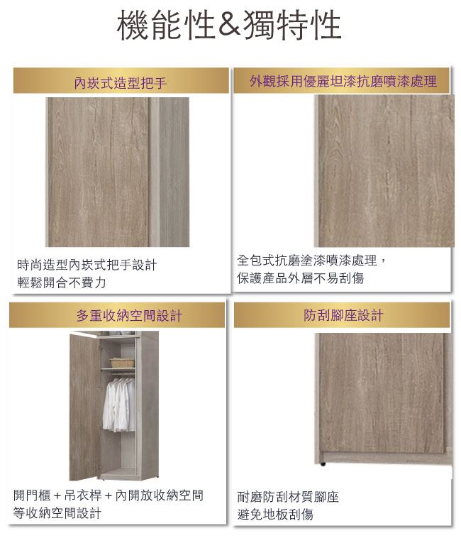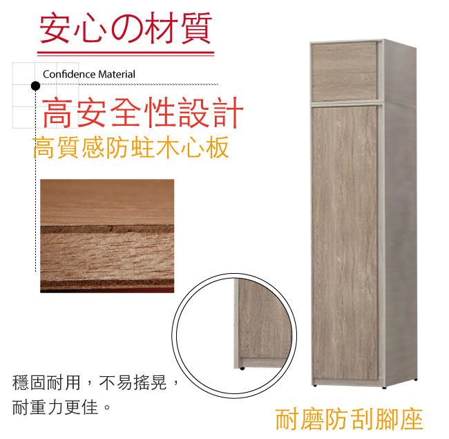 材質 | ◆產品名稱: 【綠家居】約哈爾 時尚2尺加高二門衣櫃/收納櫃 尺寸:(寬)60x(深)60x(高)241/公分 ◆材質: 材質:防蛀木心板+防潮耐磨腳座