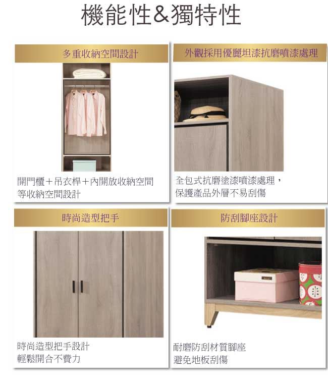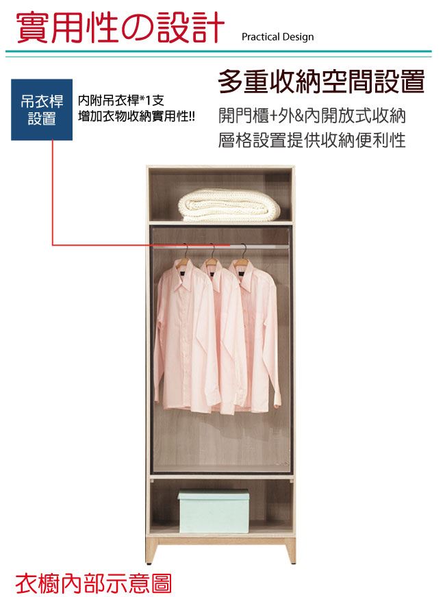 - 開門櫃+吊衣桿+內&外開放層格