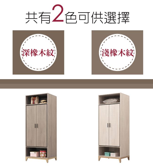【綠家居】查德 時尚2.5尺二門單吊衣櫃(二色可選)
