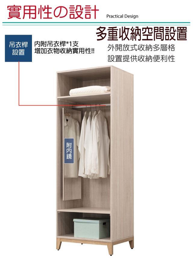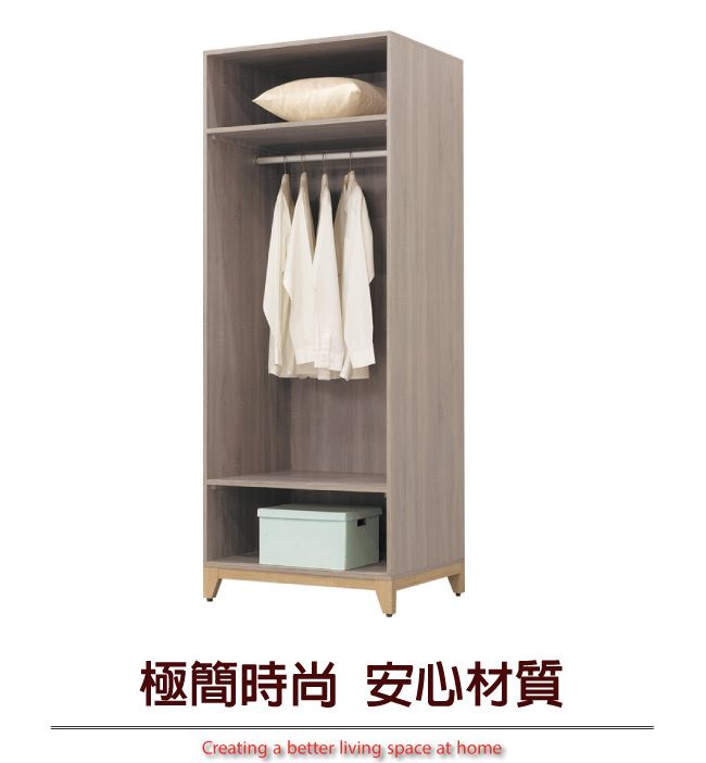【綠家居】查德 時尚2.5尺開放式單吊衣櫃(二色可選)