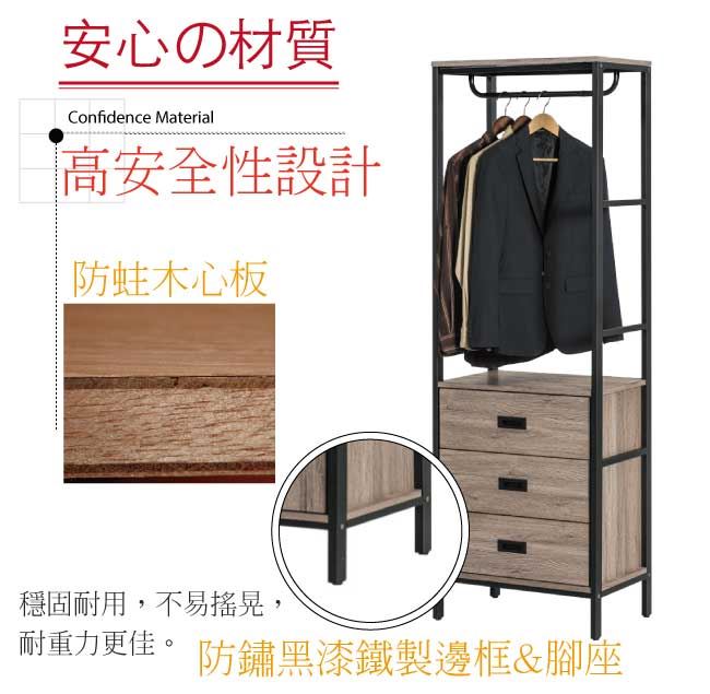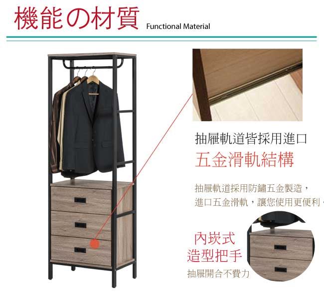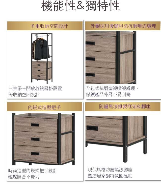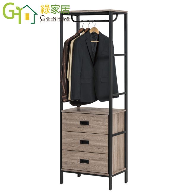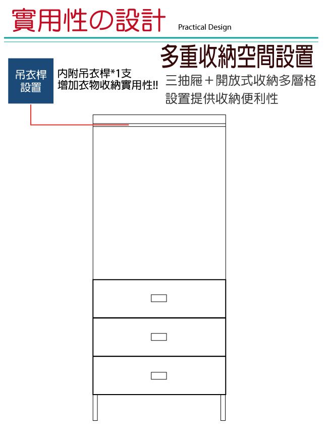 【綠家居】卡法意 時尚2尺三抽半開放式衣櫃/收納櫃