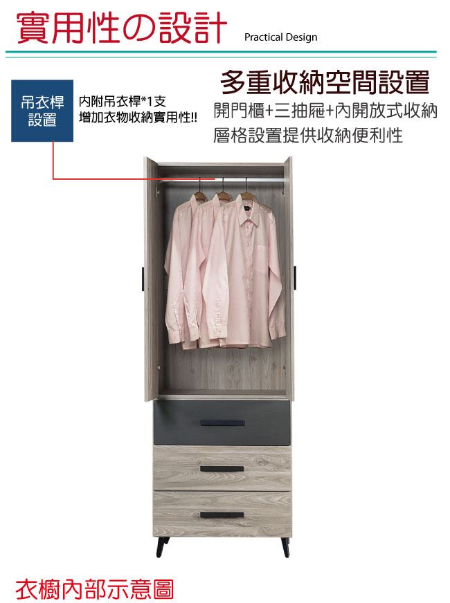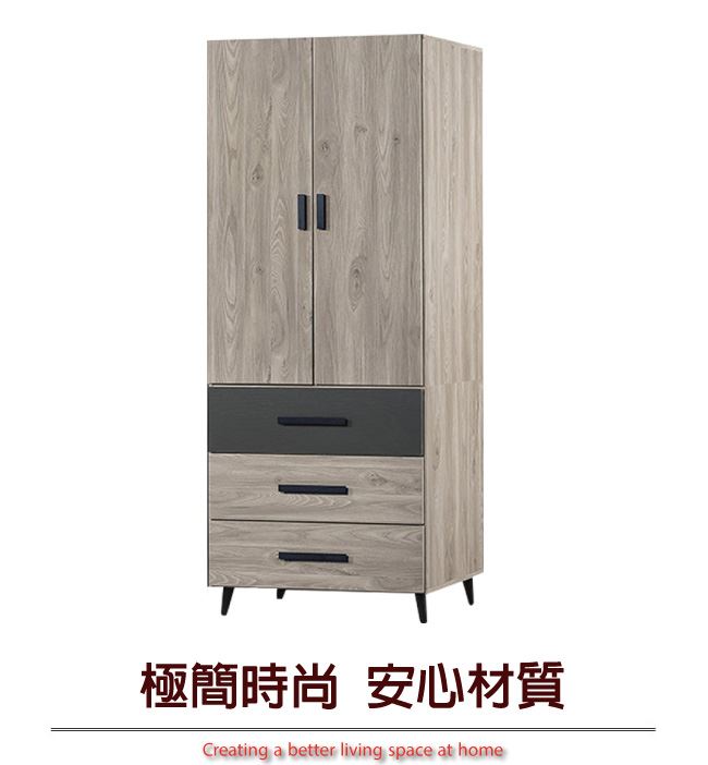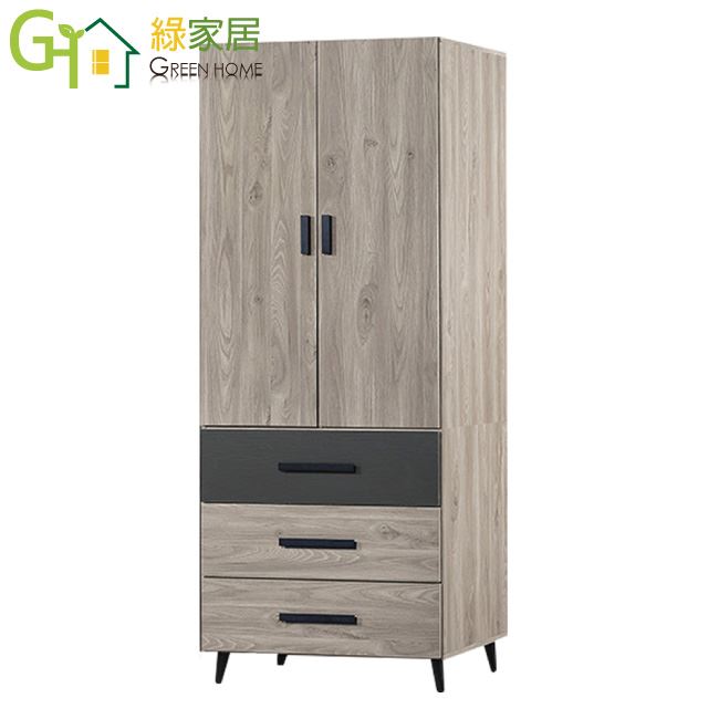 【綠家居】佩芮 時尚2.5尺二門三抽衣櫃/收納櫃