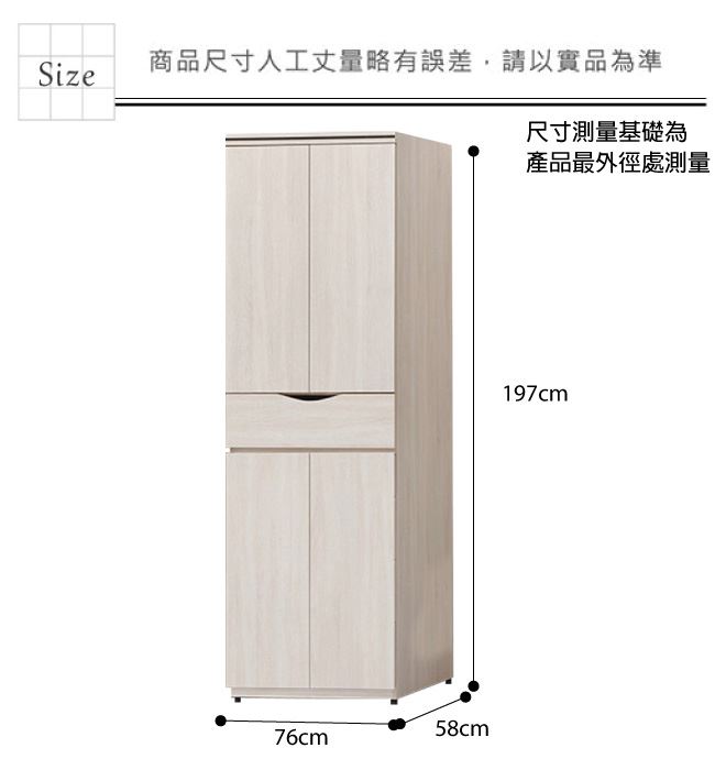 【綠家居】提米 時尚2.5尺四門單抽衣櫃/收納櫃