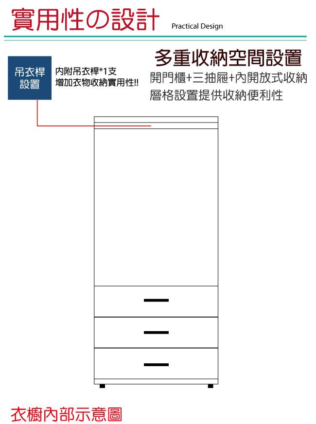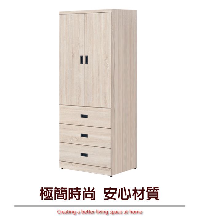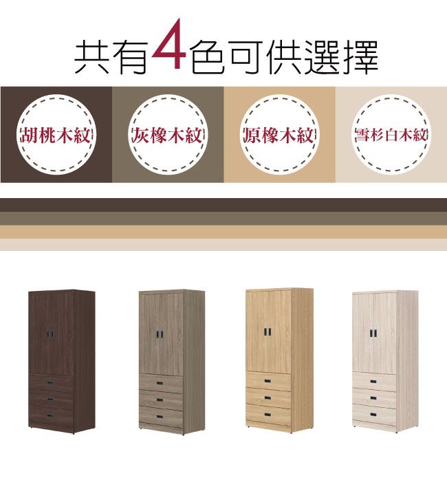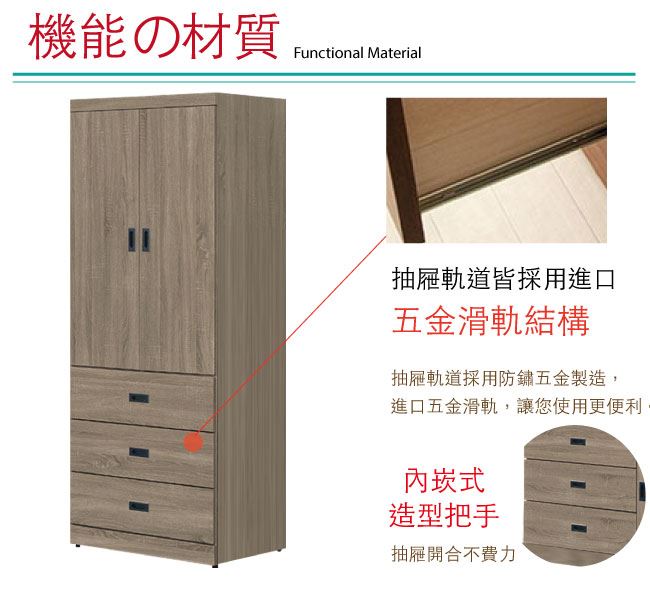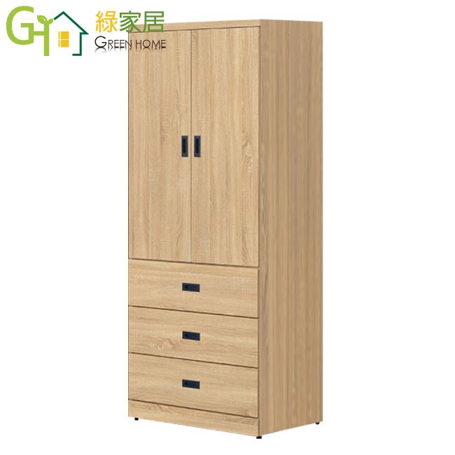 【綠家居】梅維 時尚2.6尺二門三抽衣櫃/收納櫃(四色可選)
