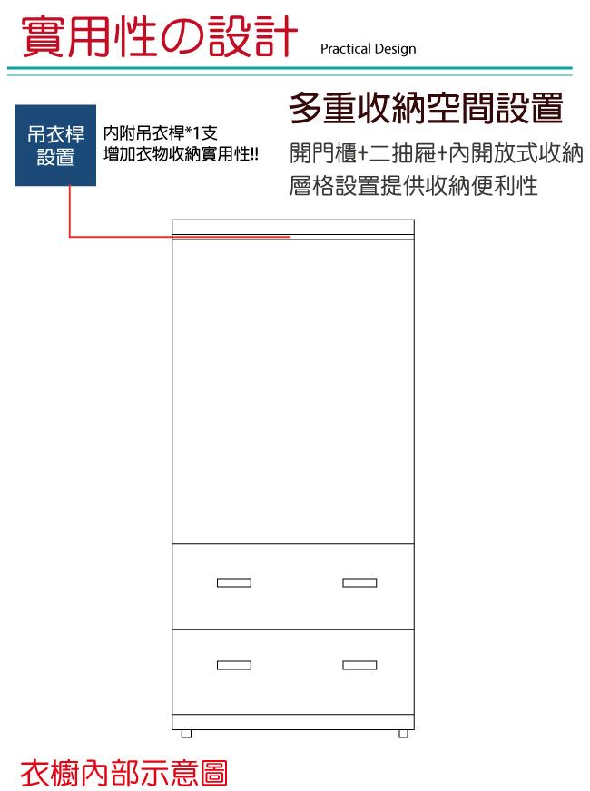 【綠家居】麥菲凱 時尚2.7尺二門二抽衣櫃/收納櫃