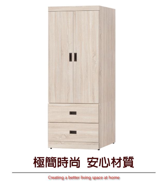 【綠家居】夏依 時尚2.6尺二門二抽衣櫃/收納櫃(四色可選)
