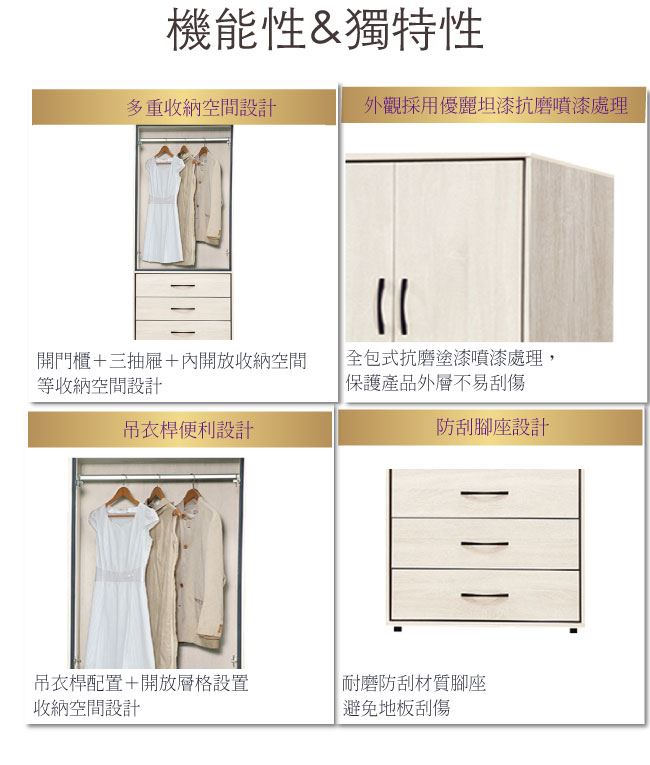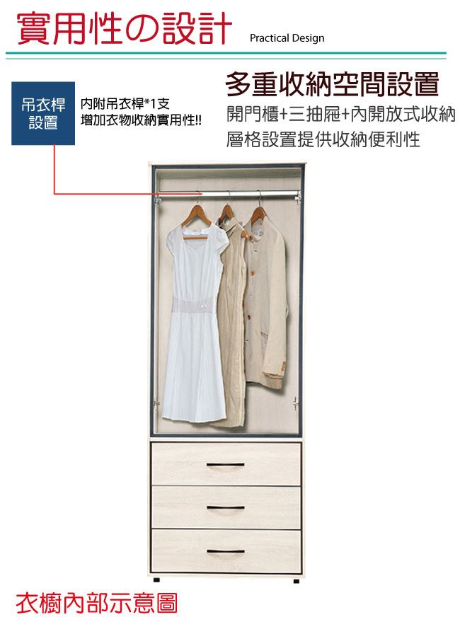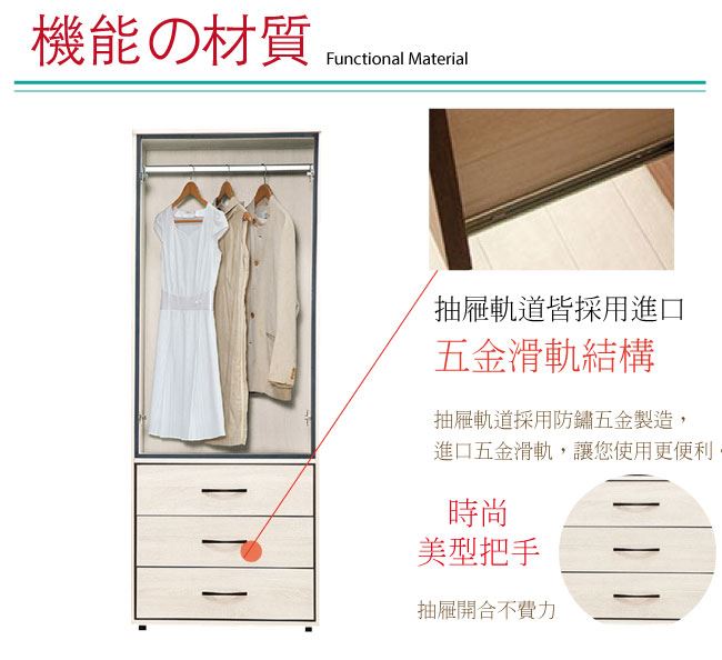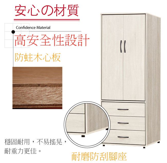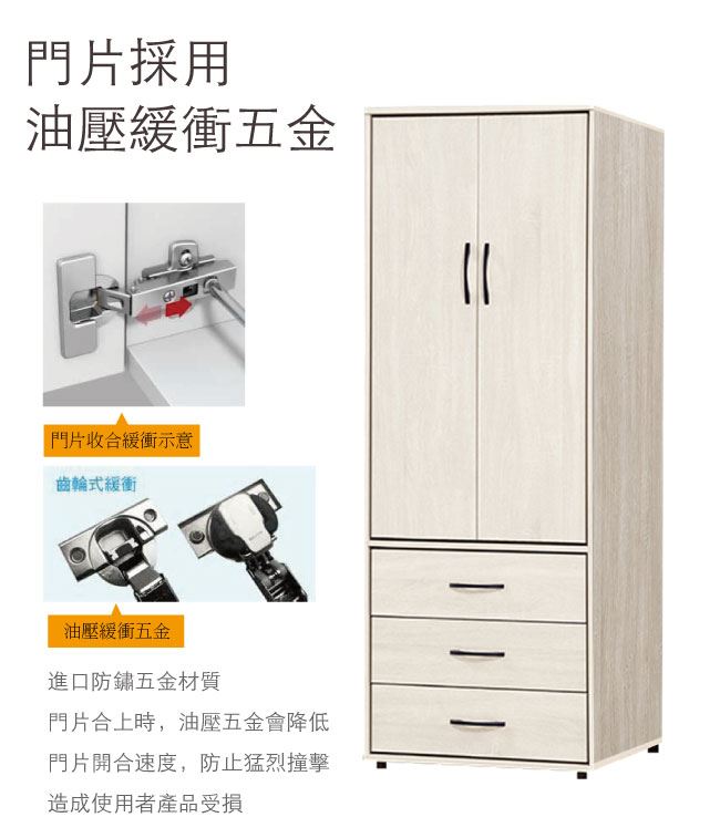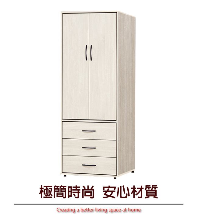 - ◆產品名稱:【綠家居】雅美2.5尺二門三抽衣櫃/收納櫃