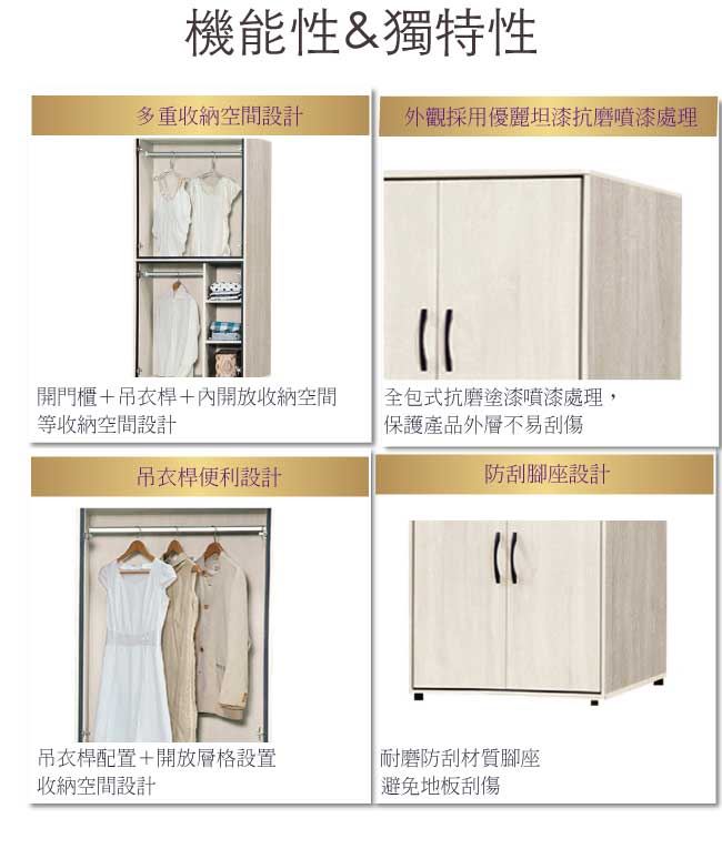 - ◆產品名稱:【綠家居】雅美2.5尺四門雙吊桿衣櫃/收納櫃