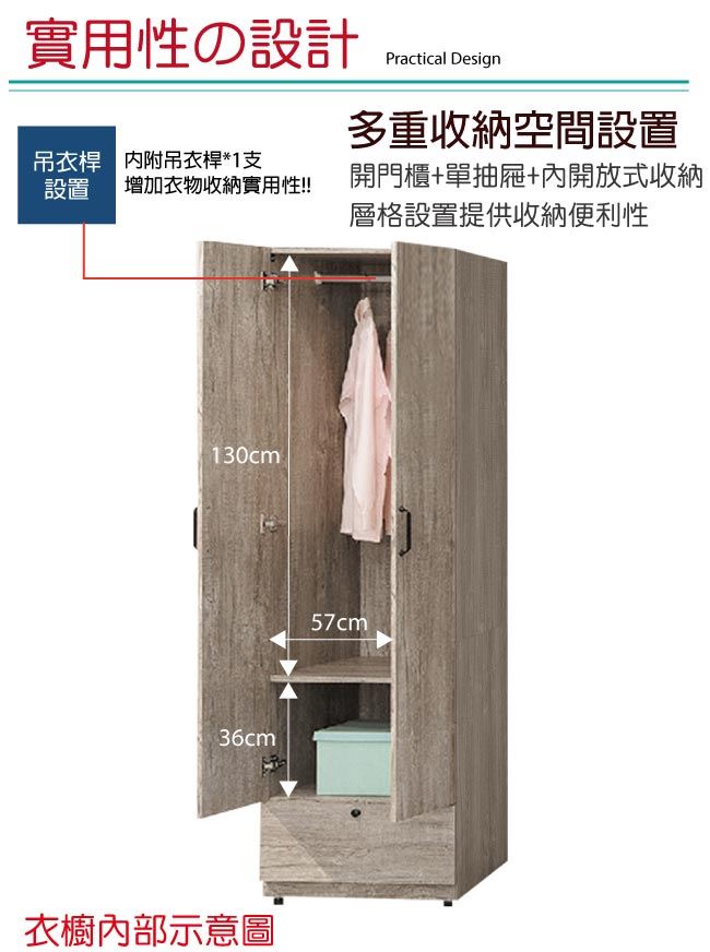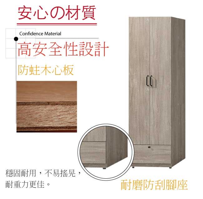 - ◆產品名稱:【綠家居】美利2尺二門單抽衣櫃/收納櫃