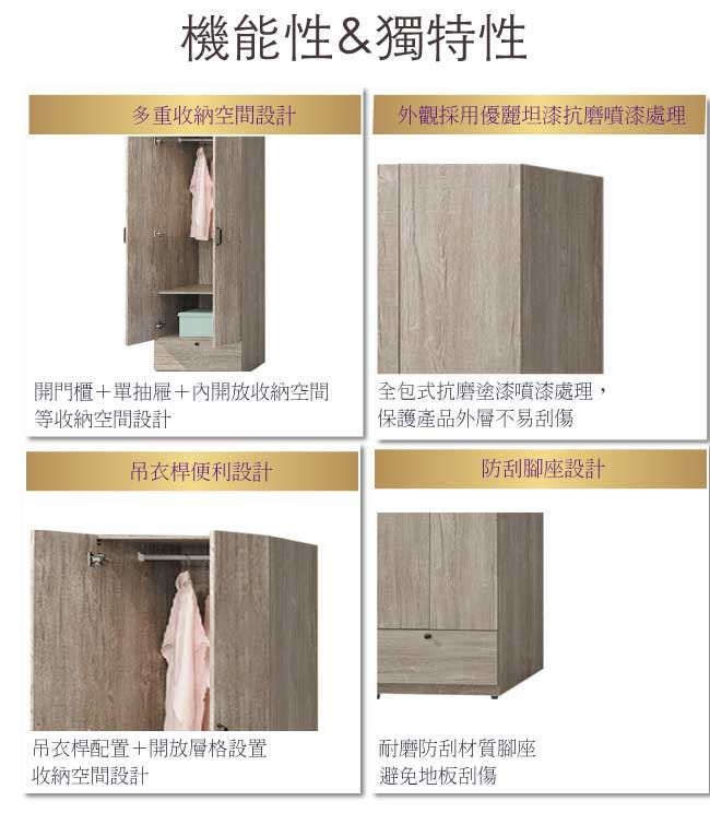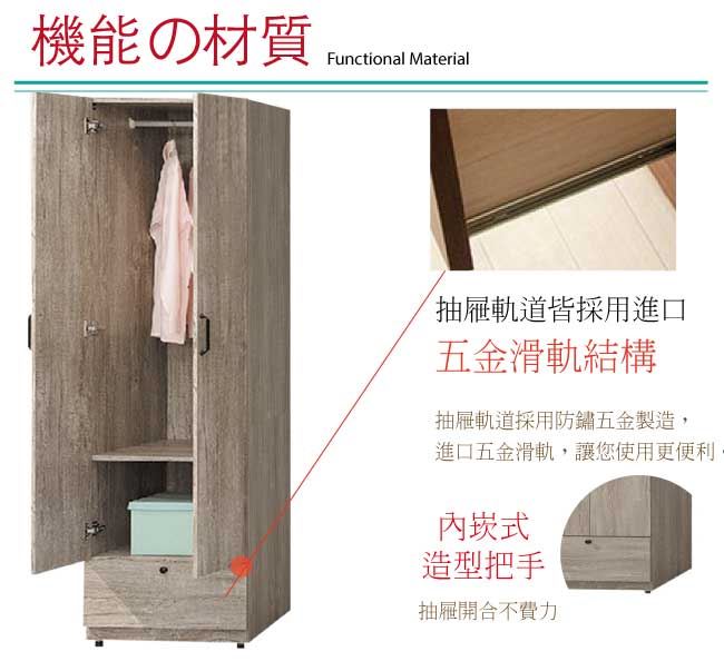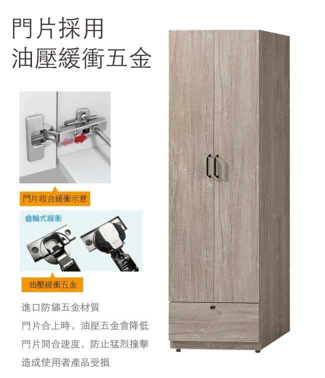 【綠家居】美利2尺二門單抽衣櫃/收納櫃