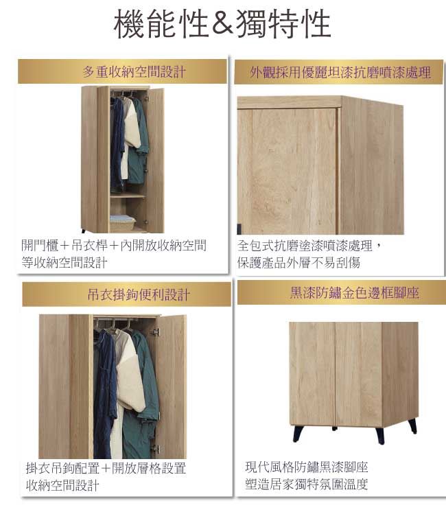 - ◆產品名稱:【綠家居】利泰2尺二門單吊桿衣櫃/收納櫃