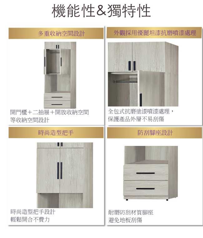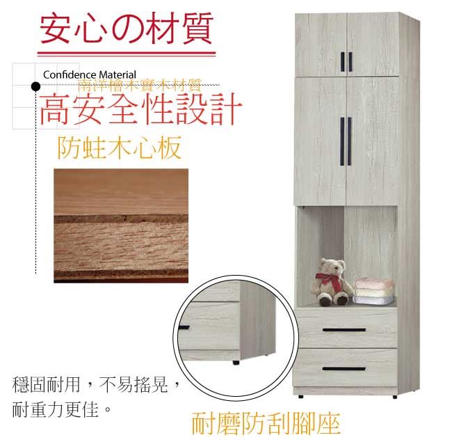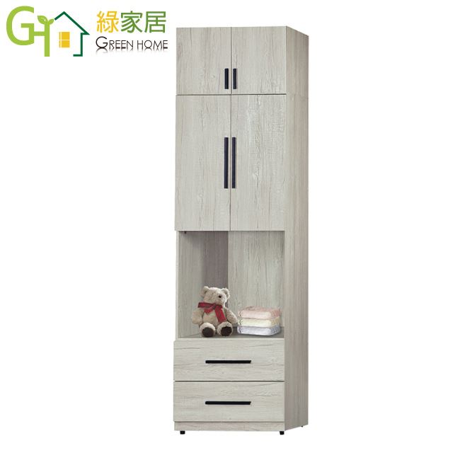 【綠家居】夏艾亞淺橡2.5尺四門二抽中空加高衣櫃組合
